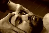 Close-up of a bearded man receiving a relaxing facial massage at a spa. Warm lighting enhances the peaceful and therapeutic atmosphere of this self-care and wellness treatment
