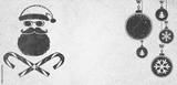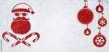 Bad Santa Claus and decorative balls symbols handwritten on christmas or new year card made of snow background with red craft paper below.