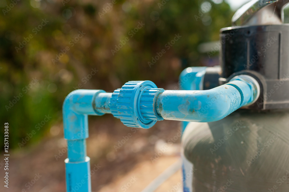 Installation of water pipe system in residential area home improvement outdoors close-up efficiency