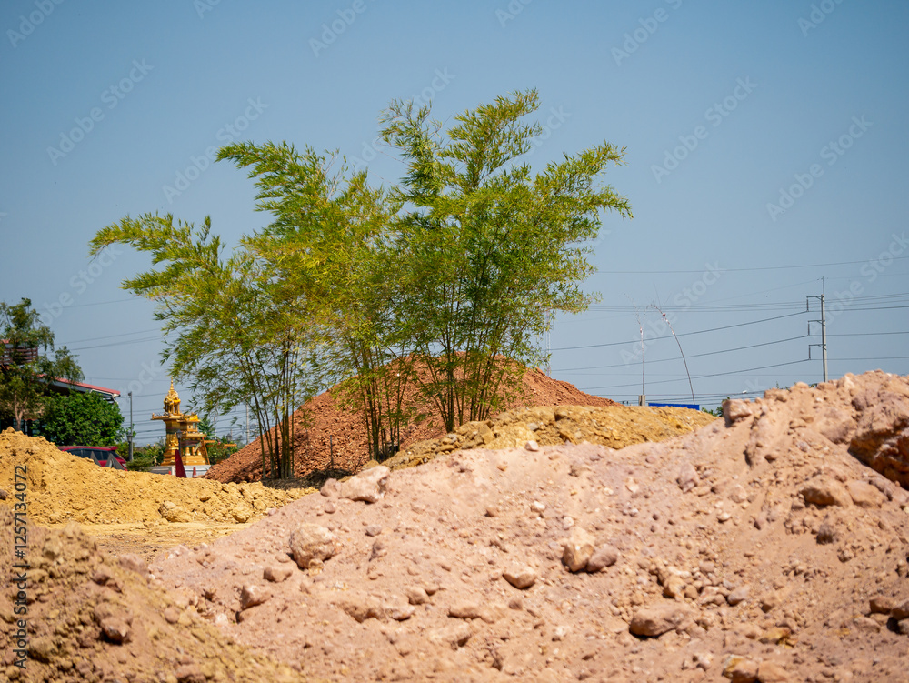 Construction progress at a building site with natural elements urban landscape