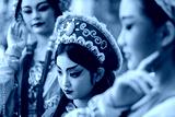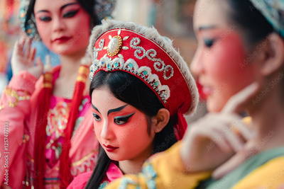 Chinese opera performers in colorful costumes cultural festival portrait style vibrant atmosphere