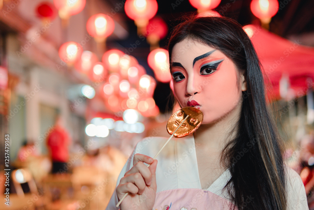 Chinese opera performance night market portrait cultural festival close-up artistry