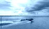 Tonle Sap lake, Siem reap Province, Cambodia. Fisherman in his boat, Floating village of Kompong Phluk, Cambodia.