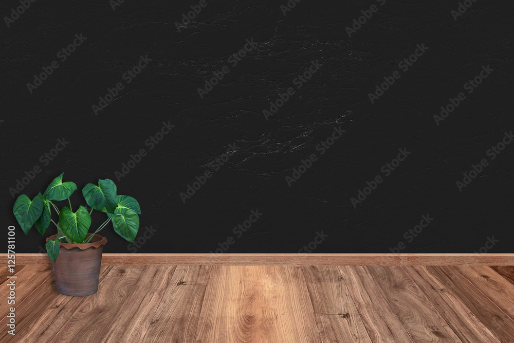 empty interior with black wall stone