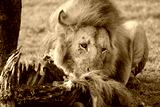 male, lion, alpha, panthera leo, leo, panthera, safari, serengeti national park, serengeti, carcass, wildebeest, gnu, gnu carcass, animal, cat, wild, circle of life,mane, wildlife, king, carnivore, fe