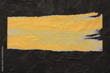 Torn, ripped paper pieces wave crack frame. Black, gold yellow copy space texture crumble background.