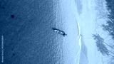 An aerial view of a boat in amazingg crystal waters of Principe Island