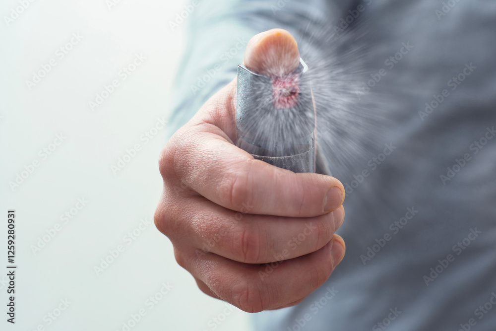 Close-Up of hand holding pepper spray, self-defense and security concept.