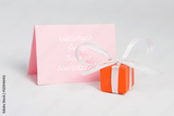 Kartka świąteczna z życzeniami i małym prezentem. Boże Narodzenie.