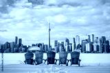Frozen Lake Ontario and downtown Toronto view from Toronto Islands in winter.