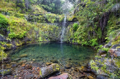 Small waterfall at Levada do Furado, Madeira, Portugal, Europe.