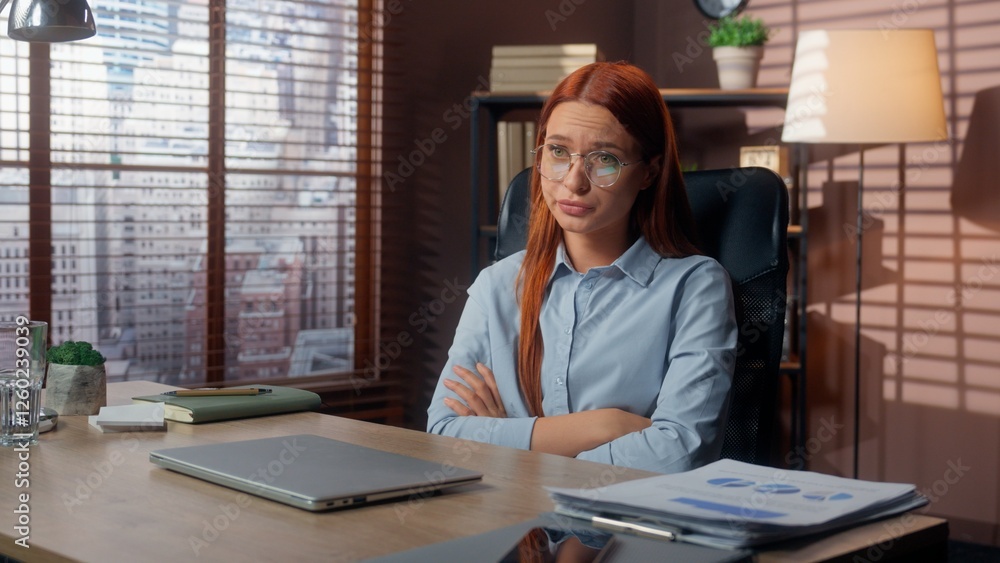 Angry offended furious problem company CEO anger dissatisfied failure pc online internet close laptop finish negotiation in office businesswoman Caucasian business woman girl female sitting at table