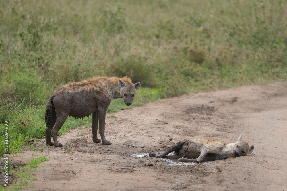 Female Hyenas Cooling Off in Mud Puddle, Serengeti National Park, Tanzania