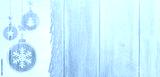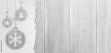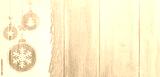 christmas card or new year background made of decorative balls handwritten on snow and wooden table