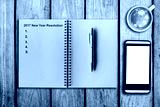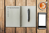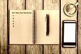 New Year Resolution 2017 as memo on notebook and coffee cup with