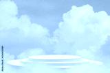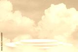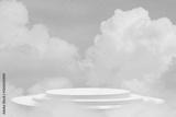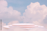 Minimal geometry podium table top with blue sky pink white cloud background.product placement pedestal modern stand display,surreal paradise dreamy concept.
