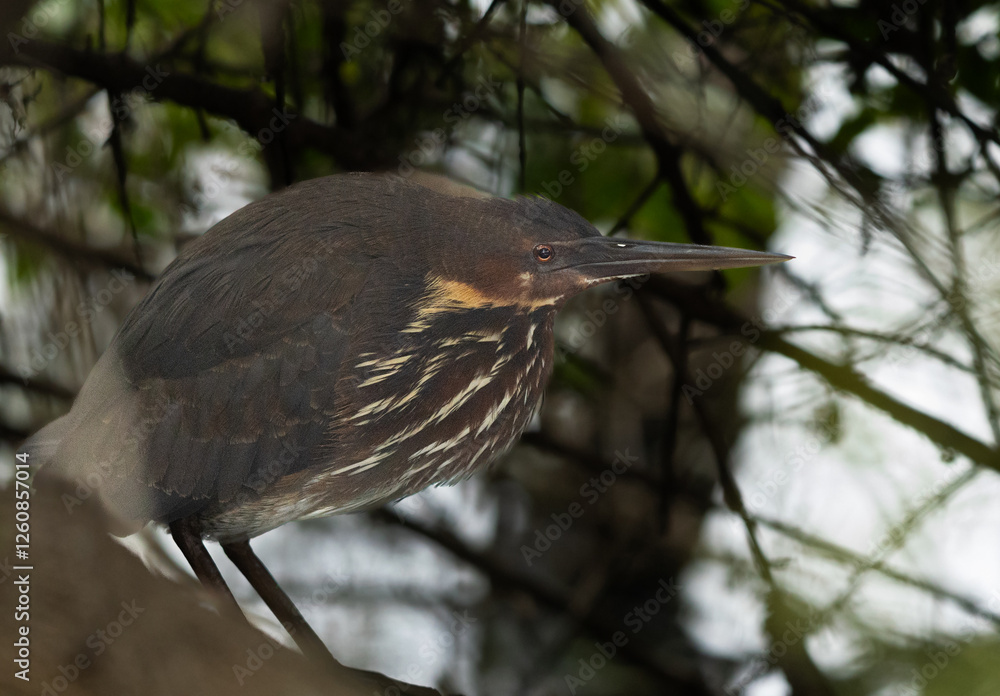 Black bittern perched in bushes at Keoladeo Ghana National Park, Bharatpur, India