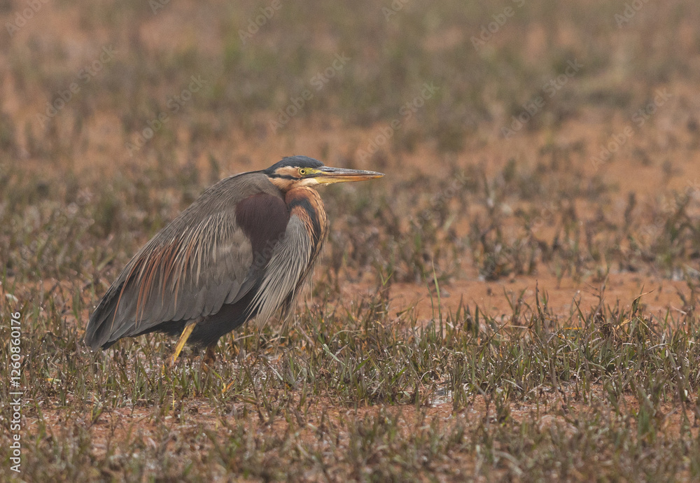Closeup of a Purple heron at Keoladeo Ghana National Park, Bharatpur, India