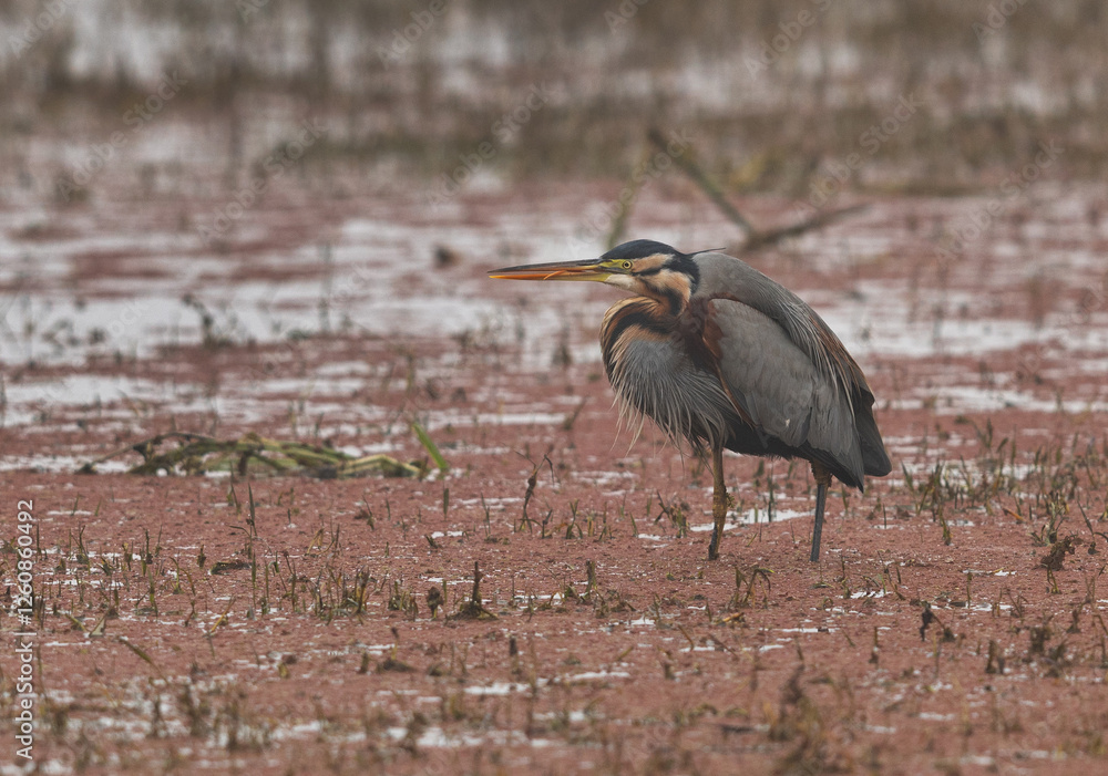 Portrait of a Purple heron at Keoladeo Ghana National Park, Bharatpur, India