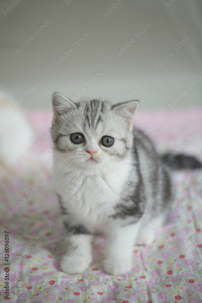 Lovely tabby cat laying on the floor