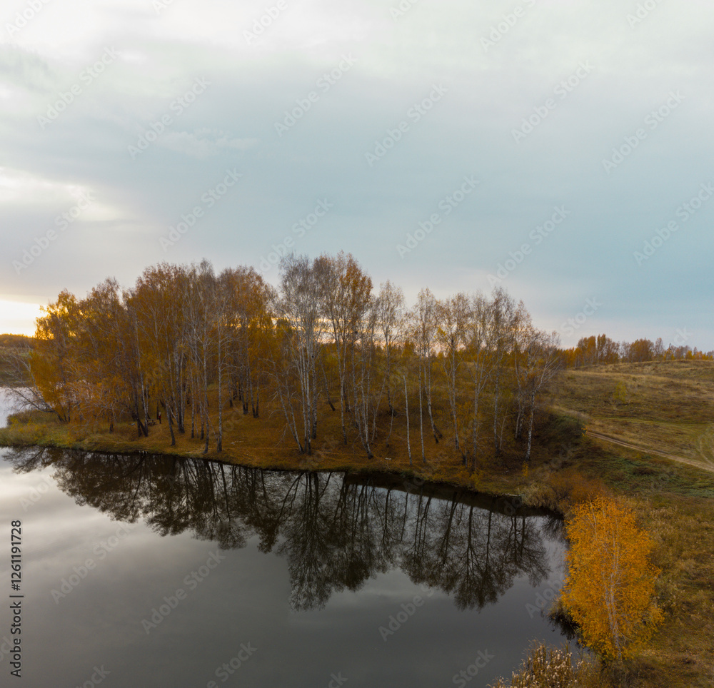 The loop of the small River in the Kurgan region of Russia, a picture from a drone