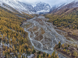Drone view the Aktru Valley in Altai Mountains in Siberia, Altai Republic, Russia