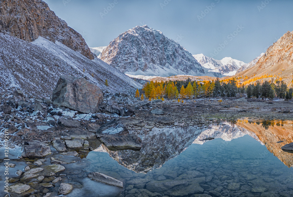 Drone view the Aktru Valley in Altai Mountains in Siberia, Altai Republic, Russia