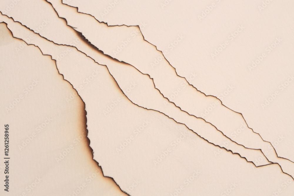 Burned Torn, ripped paper pieces wave lines. Beige, brown copy space texture background