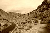 Bench on the Tunnel Drive Trail in Canon City looking into Royal Gorge, Colorado