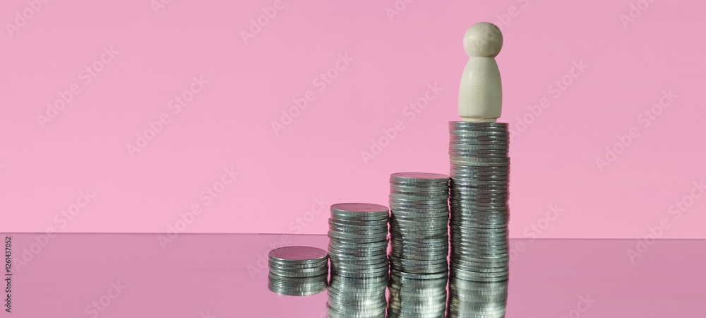 Investing in growth financial success with stacked coins studio setup business concept minimalist environment