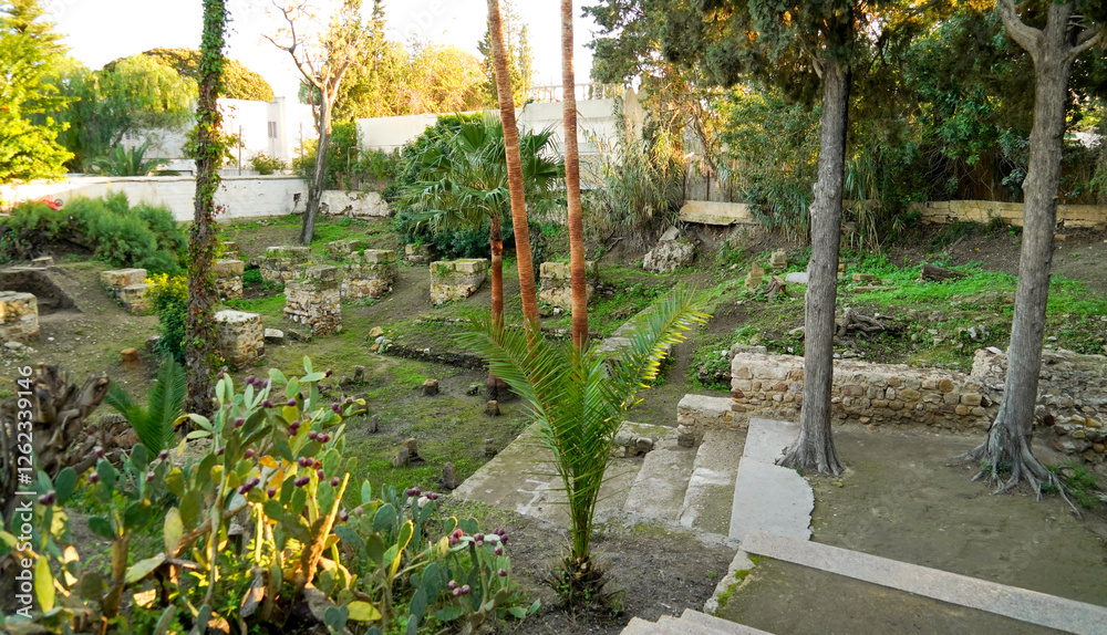 Il complesso archeologico con i resti del Santuario punico del Tophet Salammbo dell'antica Cartagine, Cartagine, TUNISIA, Area archeologica di Cartagine,. Cartagine, Tunisia, Nord Africa