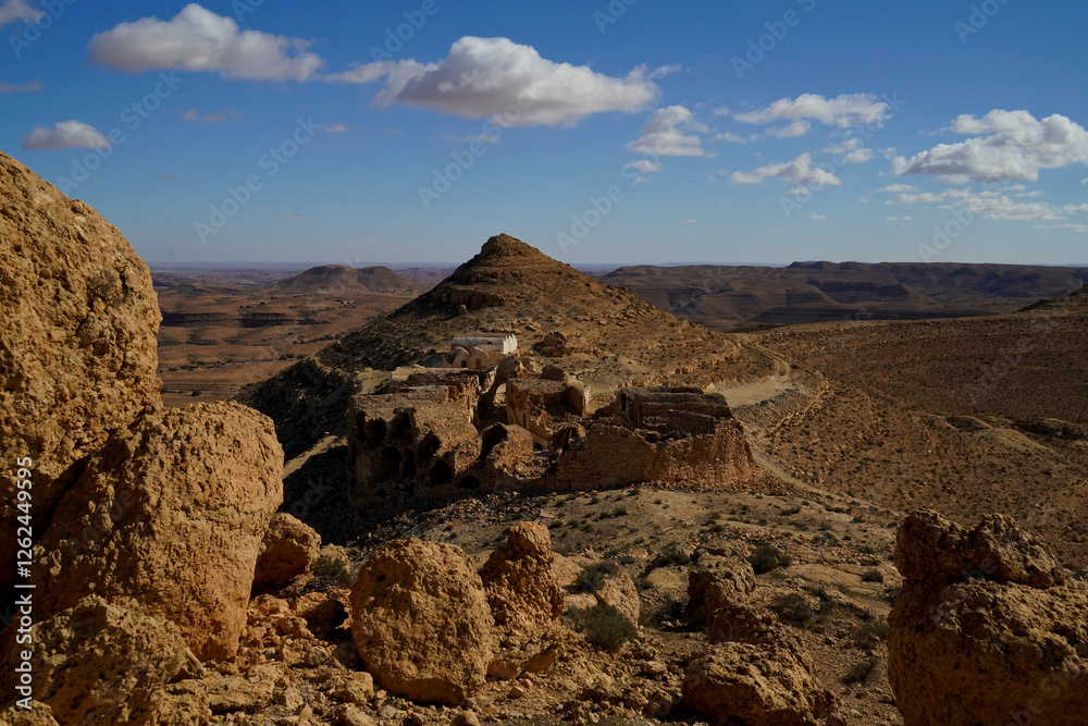 Ksar Ouled Mehdi, tipico villaggio fortificato Berbero composto da granai e abitazioni costruiti all'interno di un muro di cinta difensivo. Come quasi tutti i villaggi Berberi anche questo è oggi in s