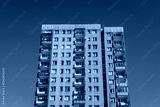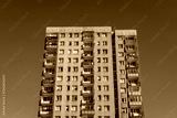 Facade of Great Panel type of apartment building in Goclaw area of Warsaw, Poland