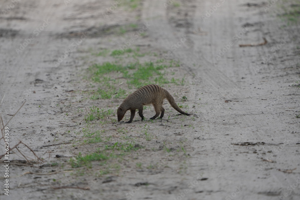 Group of Banded Mongooses Exploring a Dirt Path – African Wildlife in Natural Habitat Serengeti National Park