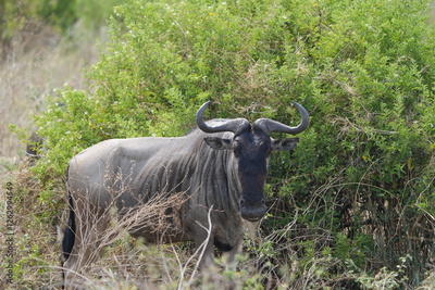 portrait of a wildebeest (gnu) in hte serengeti national park tanzania