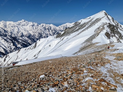 icy trail leading to Mt. Karamatsu in Hakuba, Nagano Prefecture, Japan in April.