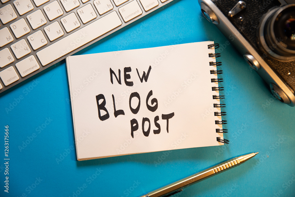 Blog word on notebook on white computer desk with pen