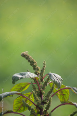 A detailed view of Amaranthus spinosus, commonly known as pigweed, with its textured leaves.
