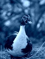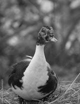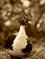 A serene image of Anas platyrhynchos, commonly known as a duck, swimming in a calm pond.