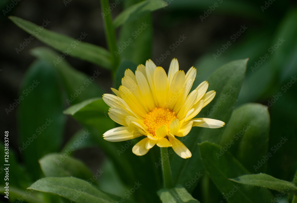 A vibrant Calendula officinalis, commonly known as calendula, with its bright orange flowers.