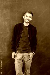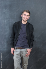 sexy fashion man or student dressed casual smiling against chalk