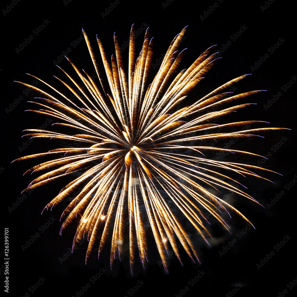 element of fireworks yellow-gold color isolated on black