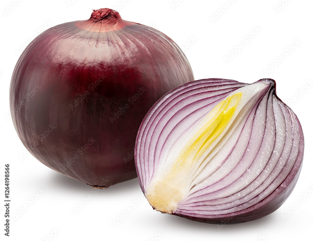 Red Onion or sweet onion isolated on white background. Red Onion on white background PNG file.