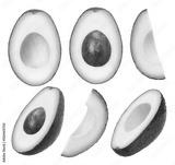 Avocado cut in half and piece isolated, transparent PNG, PNG format, cut out