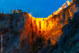 Puente Nuevo, New Bridge, at night illuminated over the Tajo Gorge in Ronda, Andalusia, Spain