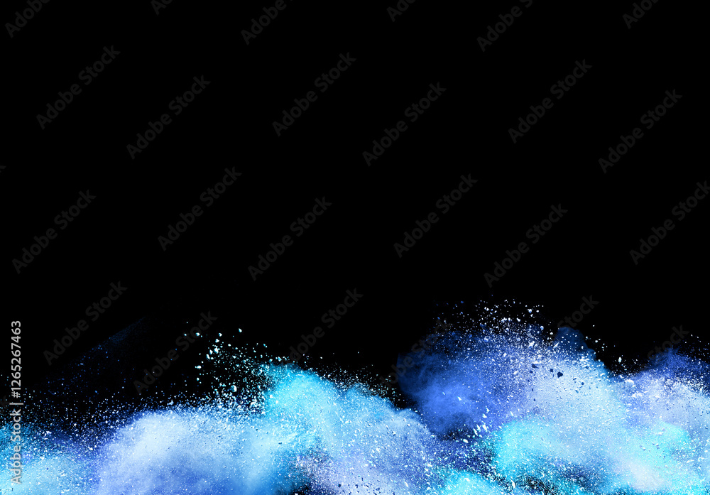Abstract powder splatted background. blue powder explosion on black background. Colored cloud. Colorful dust explode. Paint Holi
