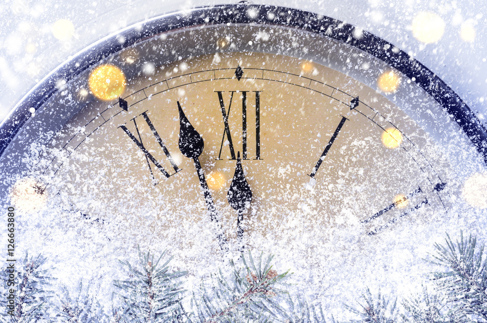 Countdown to midnight. Retro style clock counting last moments before Christmas or New Year.