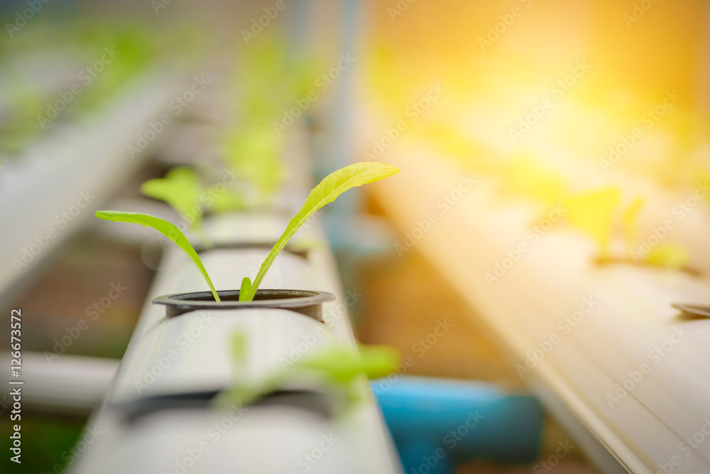 Green hydroponic organic salad vegetable in farm, Thailand. Selective focus