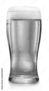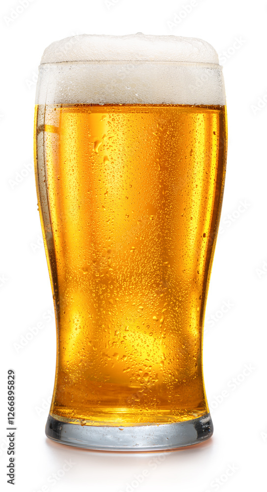 Glass of chilled light beer with beer foam head isolated on white background. Clipping path.
