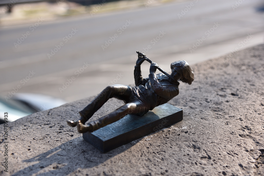 Budapest city, Hungarian capital - small sculpture of Hungarian flautist.